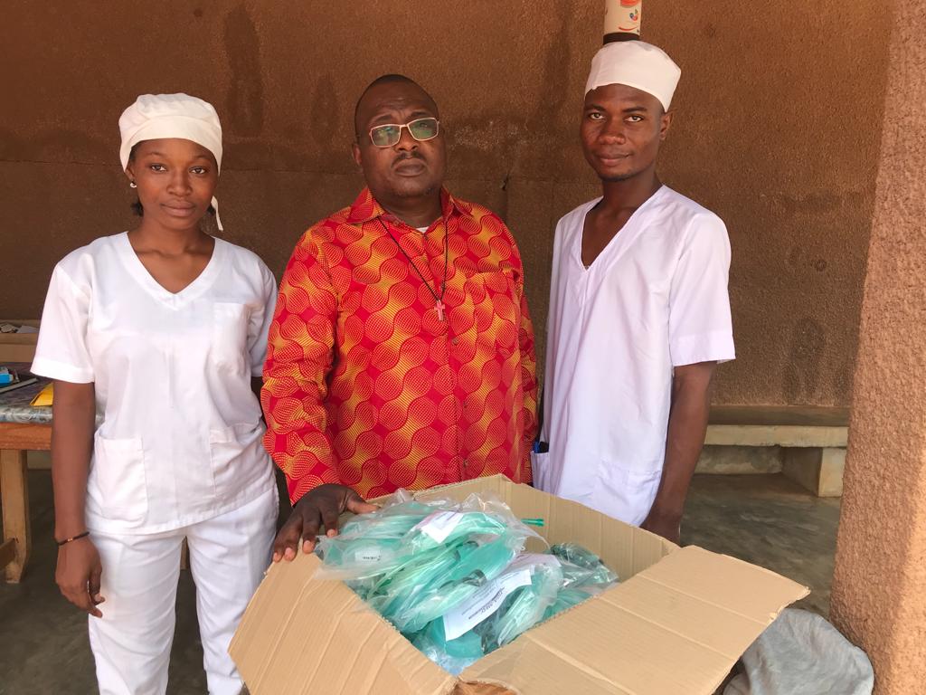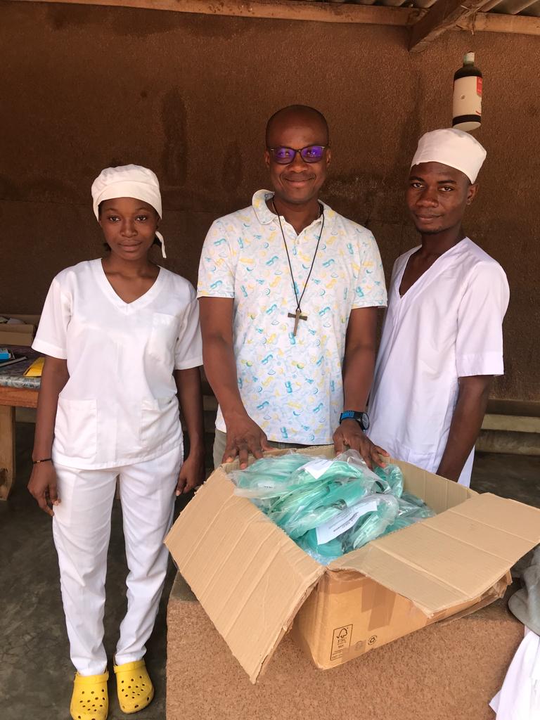 Lianes d’alliance a offert un microscope au centre Saint Camille de Segbanou pour leur faciliter les analyses. Pour transmettre ce don, le directeur du centre a remis des bons de soins gratuits pour les plus démunis. Des masques ont également été offerts au centre.
